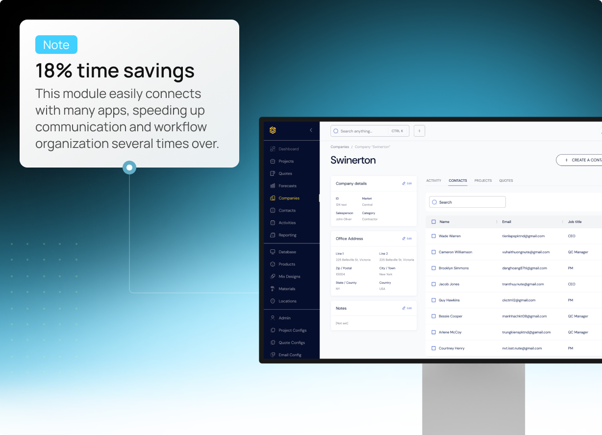 We integrate a CRM module into a complex construction ERP system, enhancing client management and project tracking. The new module improved communication, streamlined processes, and provided better data insights, resulting in more efficient project execution.